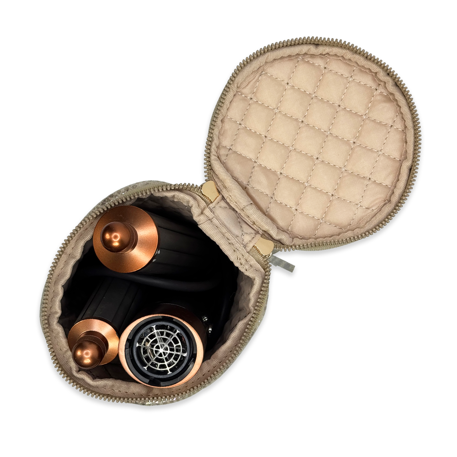 Keep your styling routine sleek and stress free with the Hot Tools Holder in sophisticated Glimmer Leopard - designed to organize, protect, and elevate your go to hair tools. Whether team Dyson or a pro with a curling wand, this case fits it all. A heat-resistant interior lining keeps things safe post-styling. Chic, compact, and made to keep up with any glow-up because your tools deserve a stylish home too.