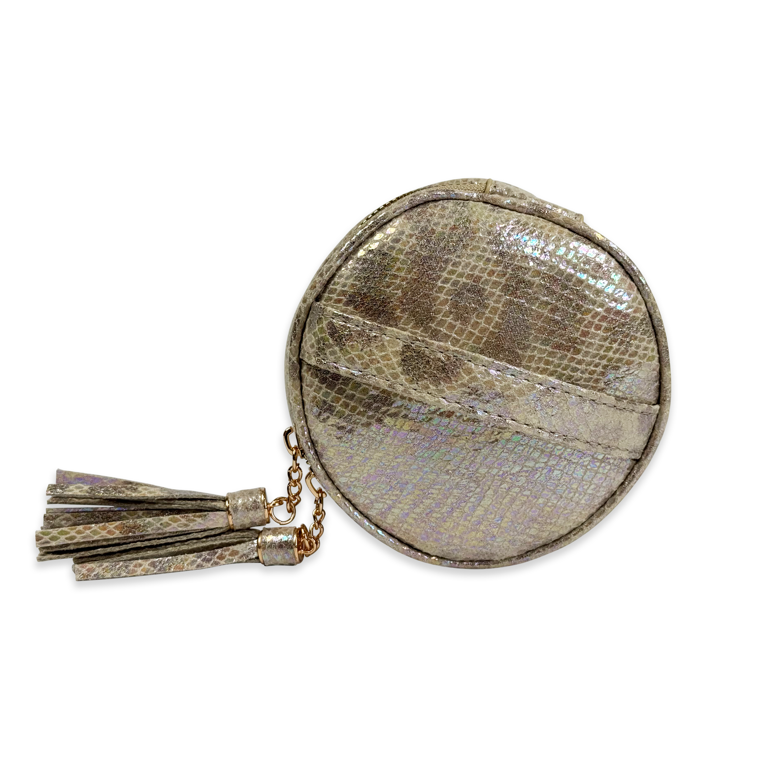 Leopard Print - Neutral Iridescent Fabric Exterior with Gold Metallic Accents