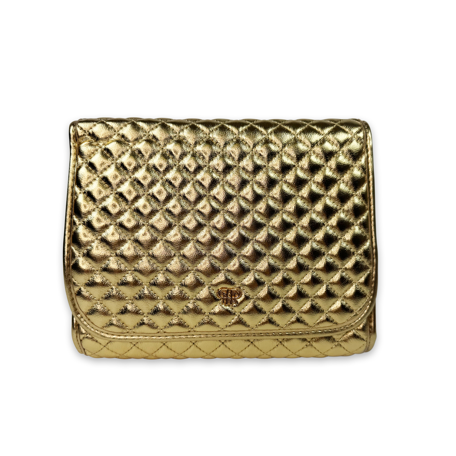 Our 24 Karat is a dazzling way to add sophistication to your organization. Our classic Hanging Toiletry Case is perfect for travel - keep your toiletries secure and beautifully organized. With the top folding hanger, your items are easily visible and accessible, no matter where your travels take you. All pockets have a clear view design, allowing you to effortlessly admire your essentials without the need to unzip. Additionally, the bottom pocket includes a removable zipper pouch for added storage capacity.