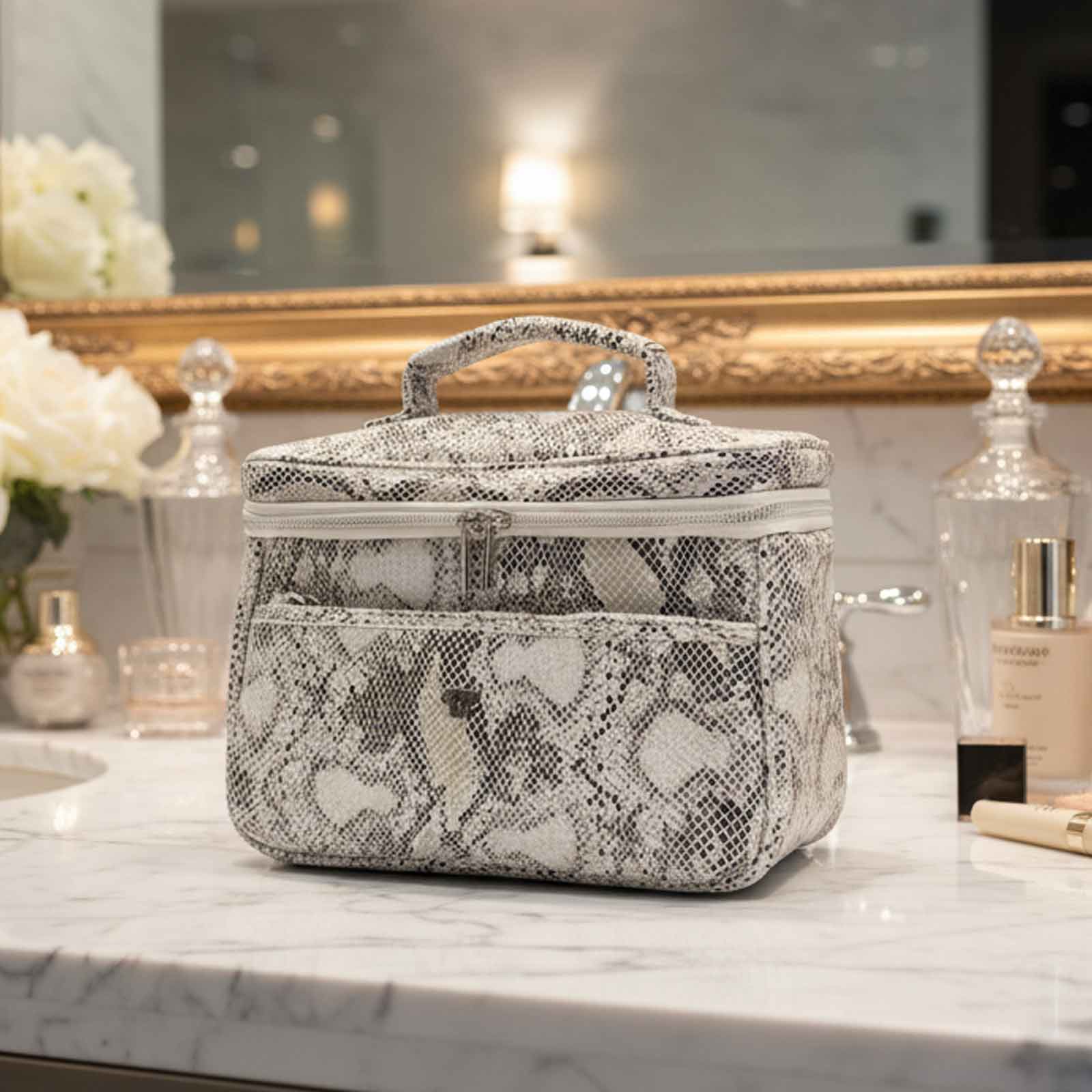 Add some feminine chic with our Train Case in sophisticated Safari Sands. This Classic Case is the perfect organizational tool for your beauty and toiletry essentials - perfect for lotions, makeup brushes, compacts, perfumes, and so much more.