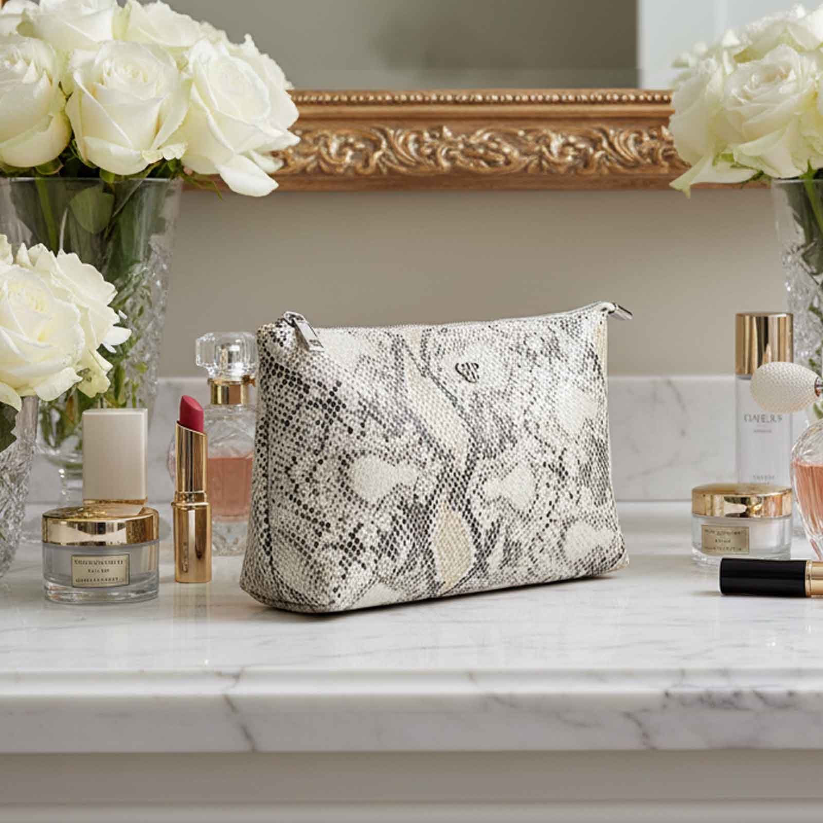 The Safari Sands Everyday Sleek case is an elegant accessory for your handbag ~ the kind of case you will reach for every day. This perfectly sized makeup case is designed to keep your everyday essentials organized without taking up too much room. Slim yet surprisingly spacious, it easily holds makeup, brushes, touch-up essentials, and small personal items. Its compact shape makes it ideal for slipping into your handbag or travel tote while maintaining the elevated, polished look PurseN known for.