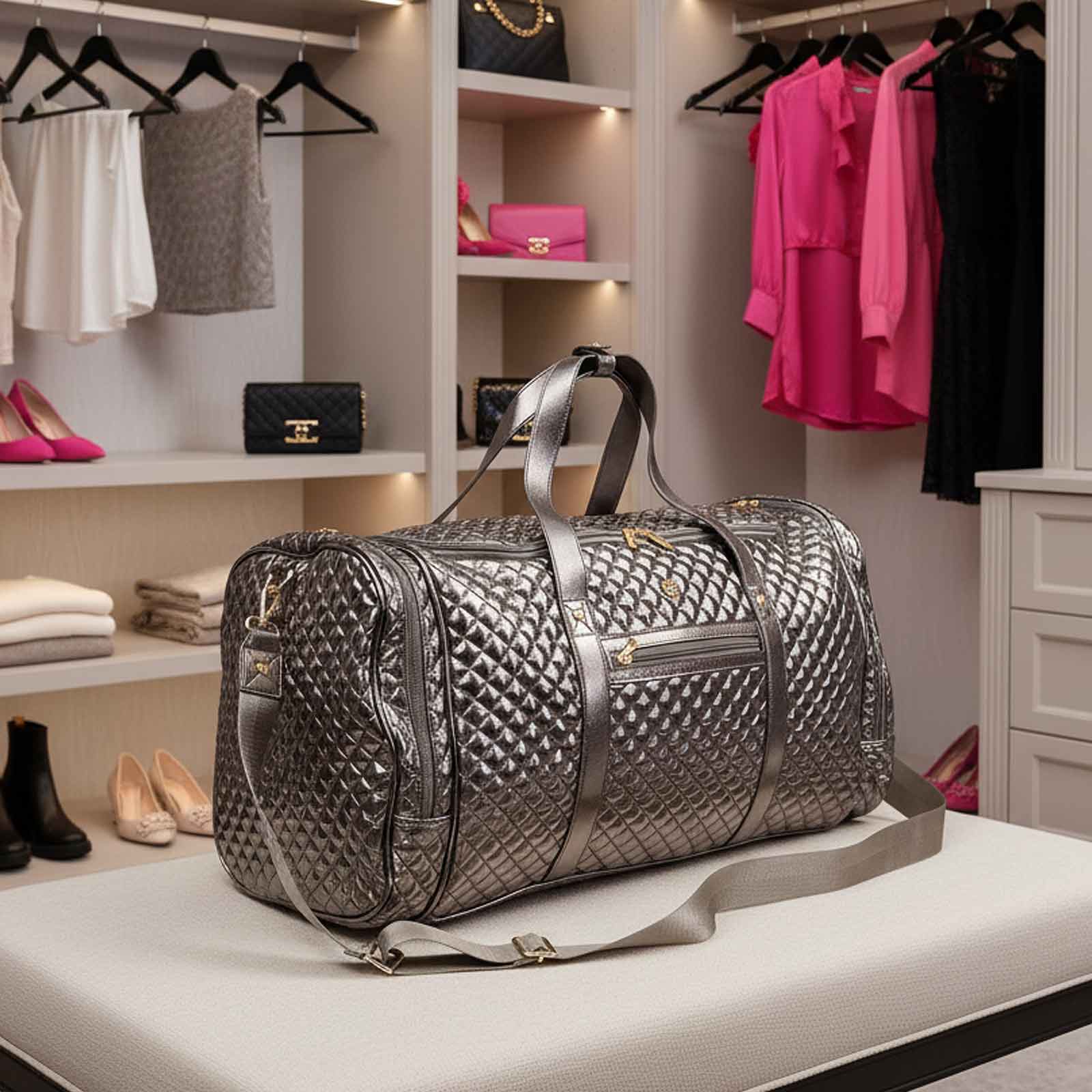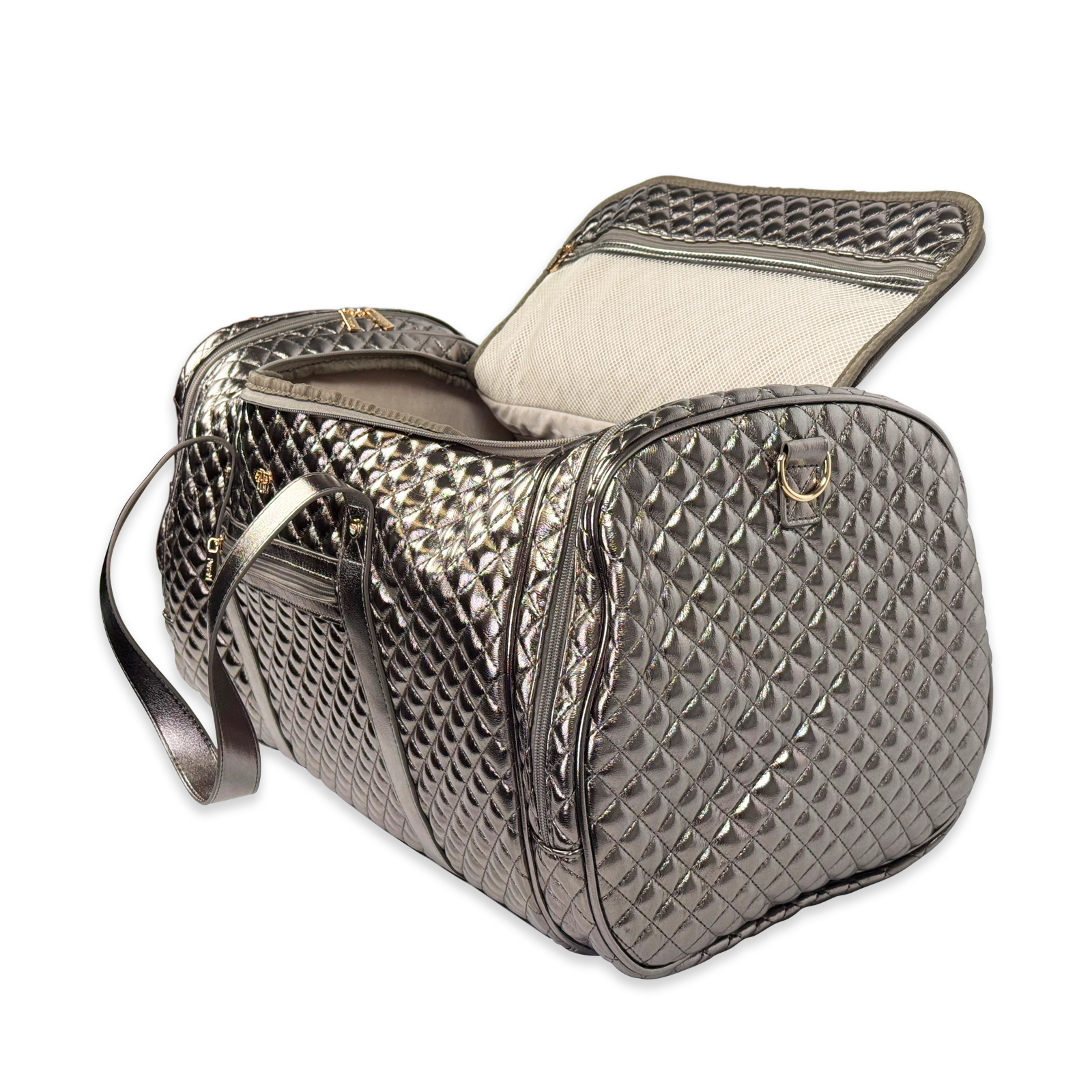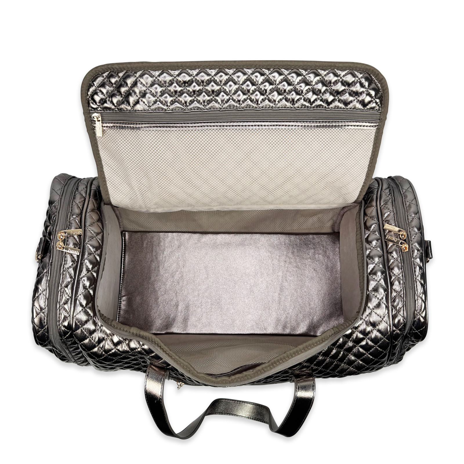 Think MODERN CHIC! We have taken our VIP Travel Duffel and slimmed it down to make it easy for weekend and overnight trips. Our Bronze Quilted in the classic diamond pattern with a metallic shimmer is the epitome of glamour and will bring an element of luxury as a travel companion.