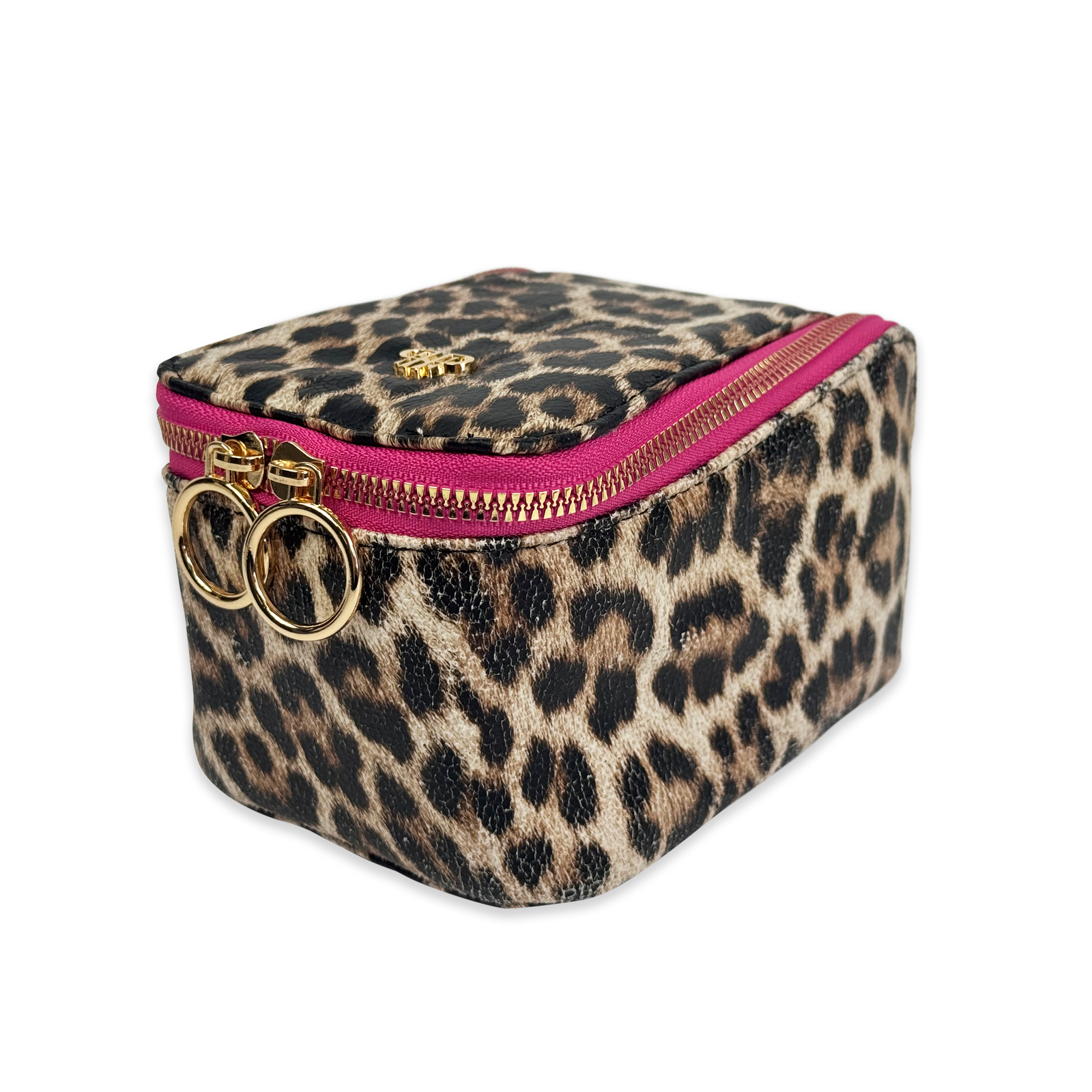 Chic, compact, and cleverly designed, the Train Jewelry Case in sporty Fierce Leopard is your go-to for maximum organization in a perfectly portable size. Ideal for small to medium jewelry pieces, it unzips to completely reveal a thoughtfully arranged interior featuring 2 elastic pockets, 3 clear front zippered compartments, and space for everything from studs to statement pieces. With 3 earring stays, 3 necklace holders, and 6 removable clear front pouches included, this soft-sided case brings effortless elegance to your travel routine - and keeps your sparkle sorted and easy to see wherever you go.