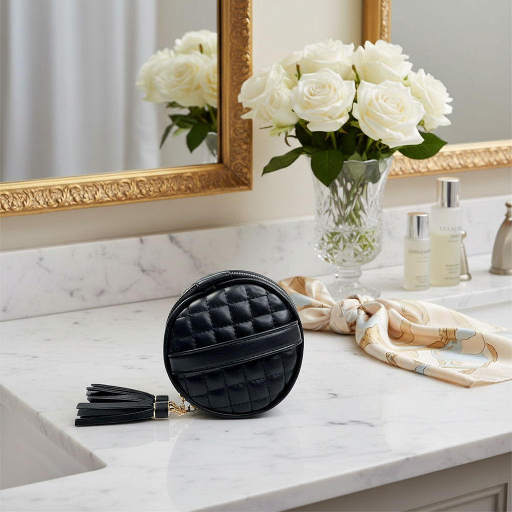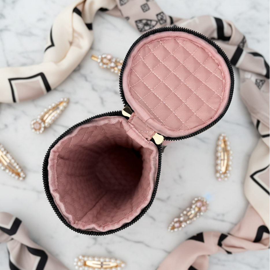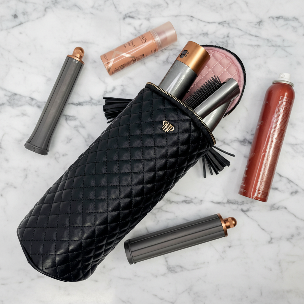 Keep your styling routine sleek and stress free with the Hot Tools Holder in classic black Timeless Quilted - designed to organize, protect, and elevate your go to hair tools. Whether team Dyson or a pro with a curling wand, this case fits it all. A heat-resistant interior lining keeps things safe post-styling. Chic, compact, and made to keep up with any glow-up because your tools deserve a stylish home too.