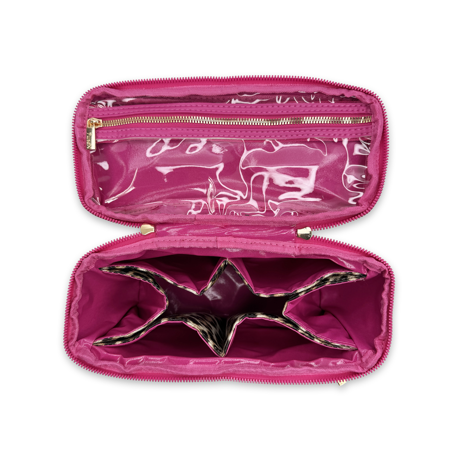 • L eopard with Hot Pink Accents - Vegan Leather Exterior