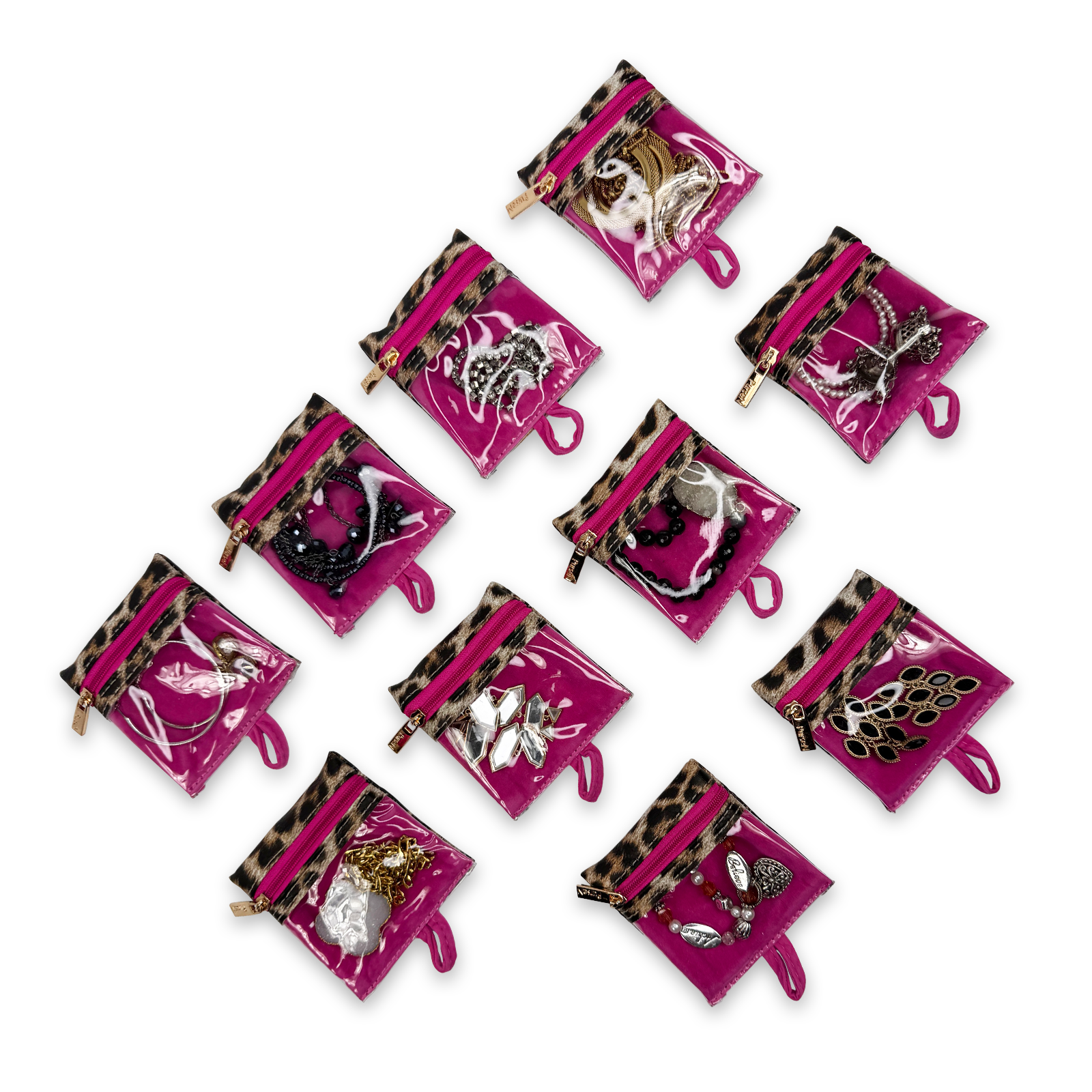 - FOR TRAVEL: Keep jewelry organized and protected with clear window zippered pouches. Easy to find what you are looking for. 10 Total pouches - travel with as many as needed. 2 Additional side snap pockets for bangles, watches, and other larger pieces.