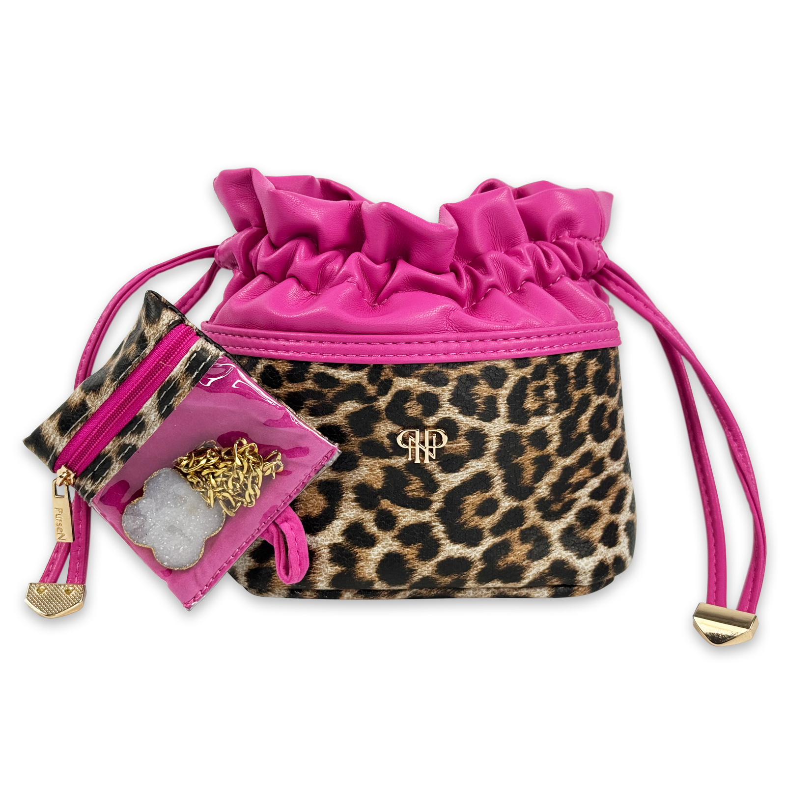 - Leopard with Hot Pink Accents - Fabric Exterior