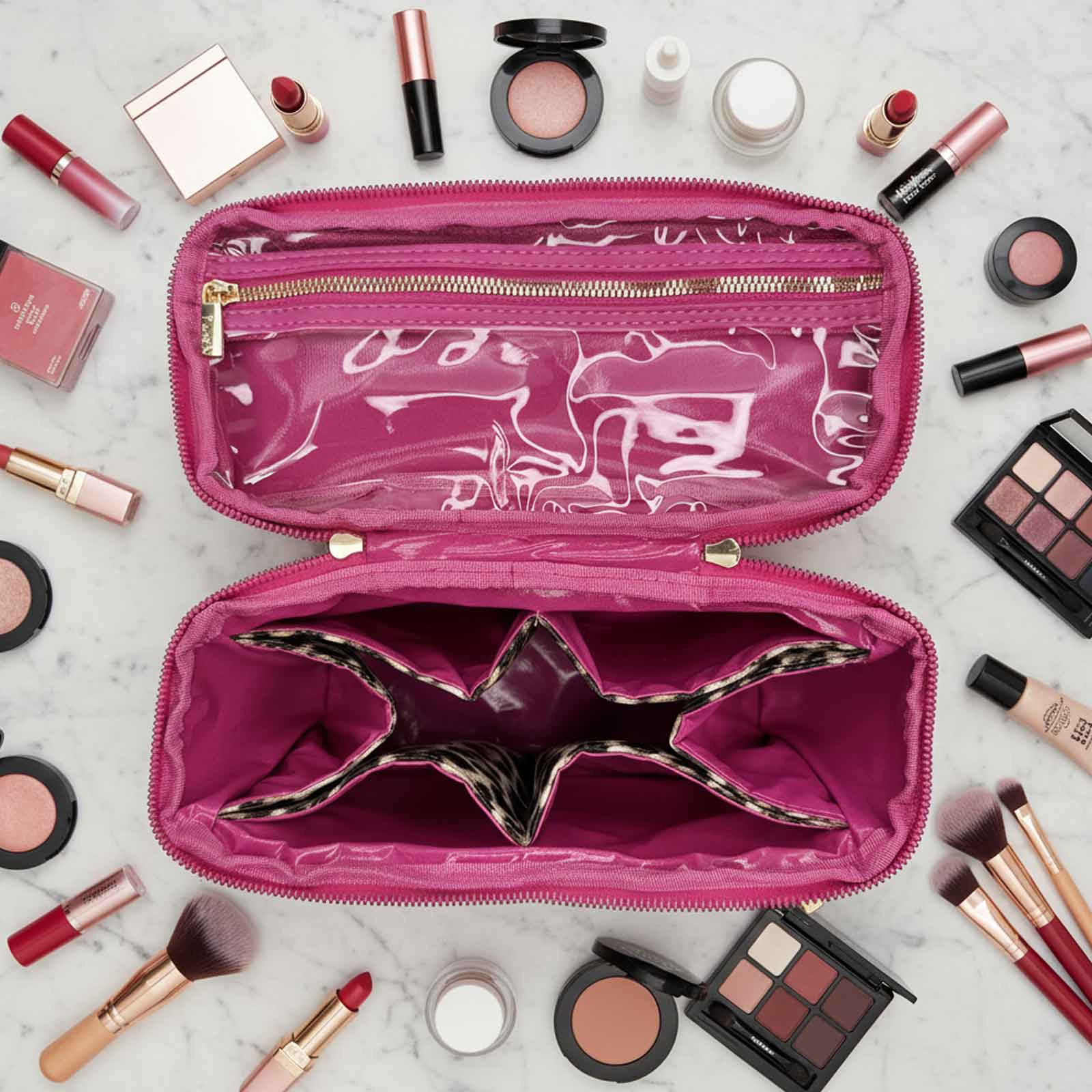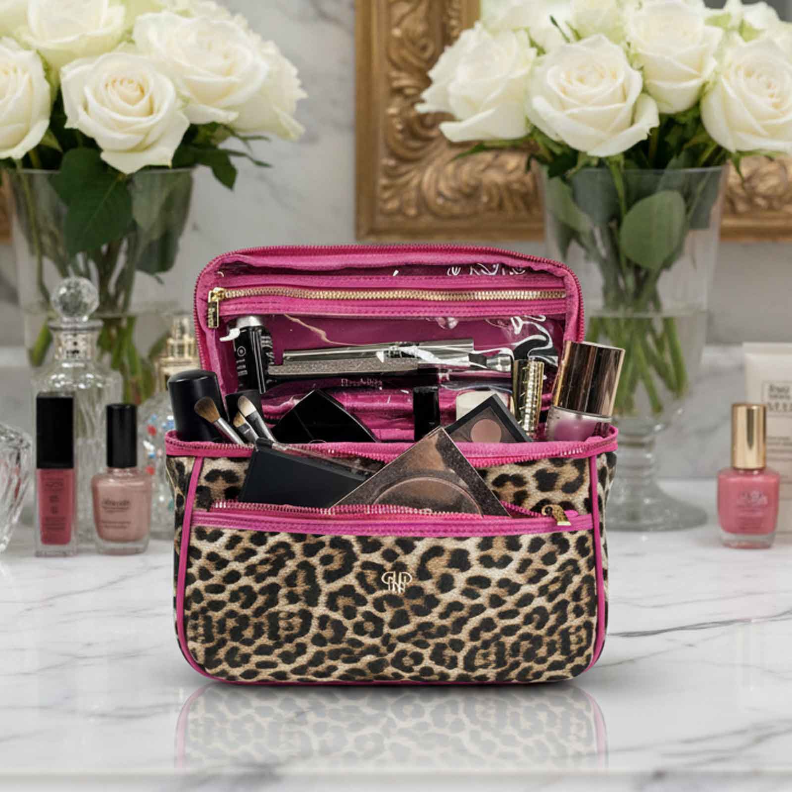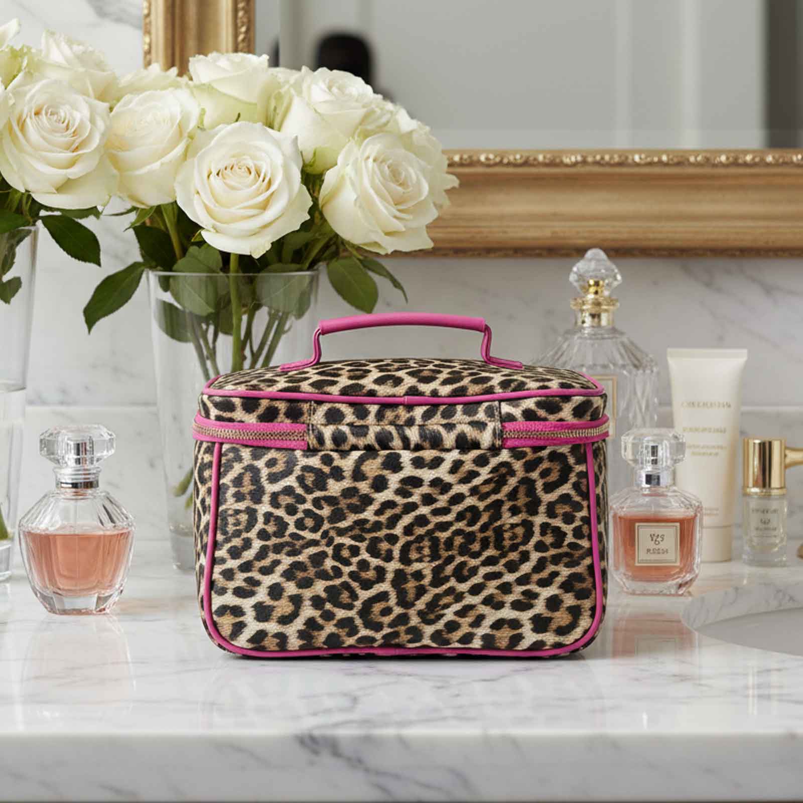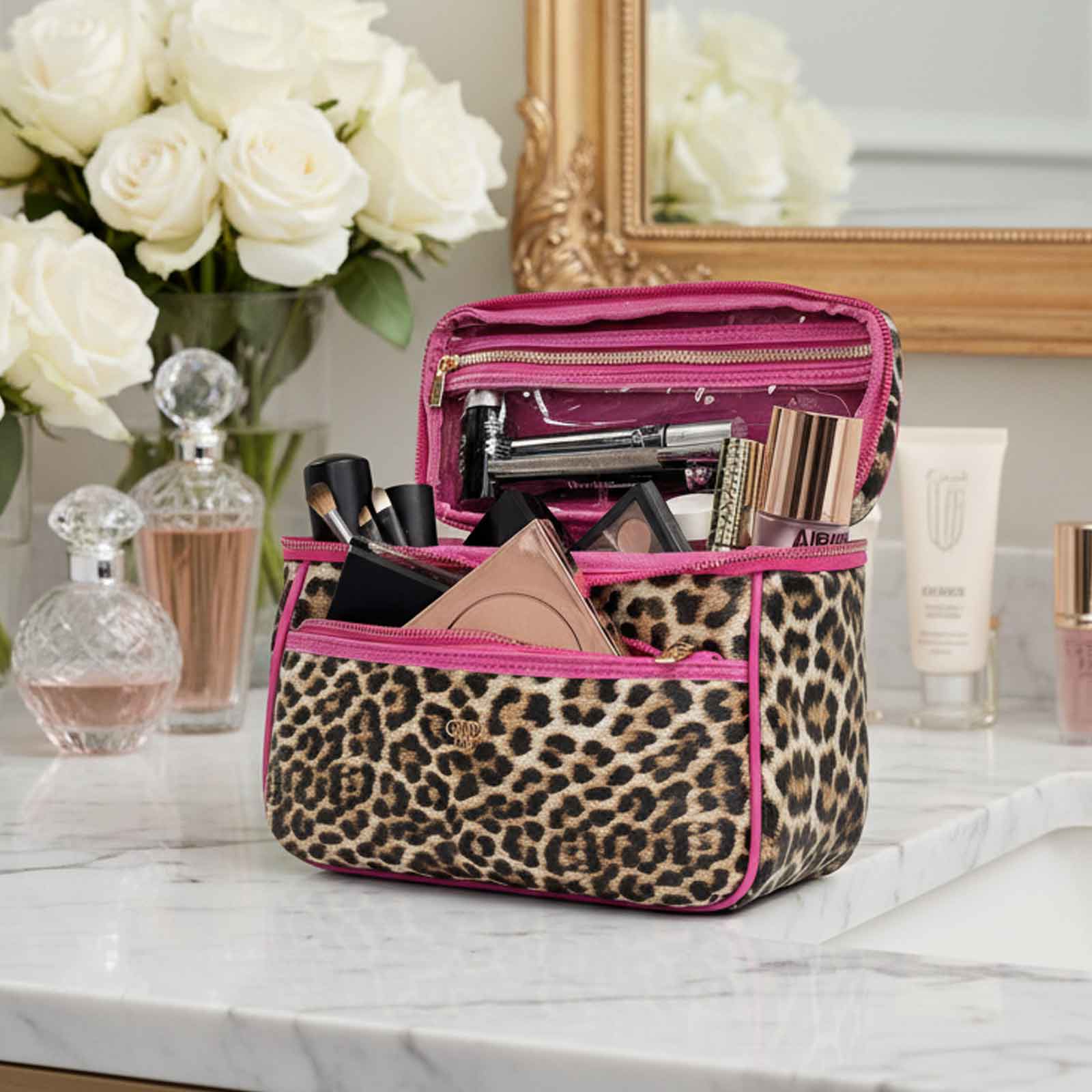Add some feminine chic with our Train Case in sporty Fierce Leopard. This Classic Case is the perfect organizational tool for your beauty and toiletry essentials - perfect for lotions, makeup brushes, compacts, perfumes, and so much more.